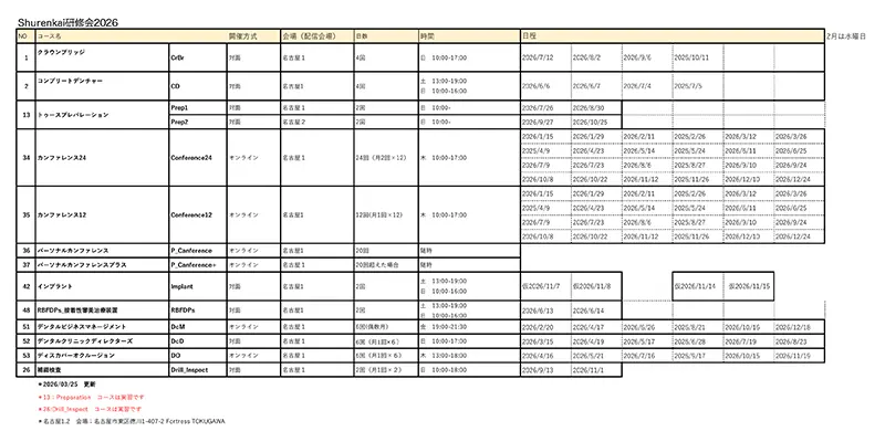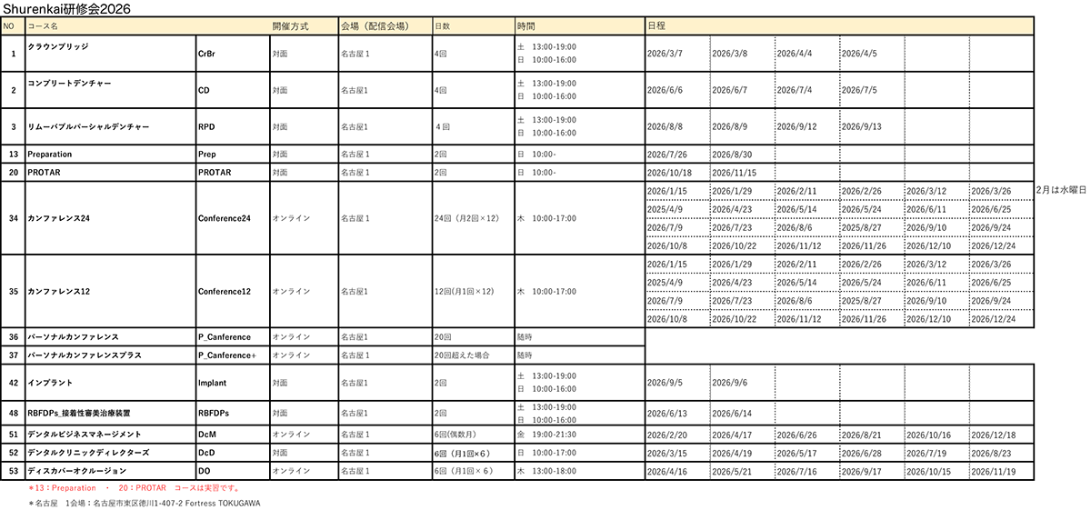 Shurenkai 研修会 2026年コース