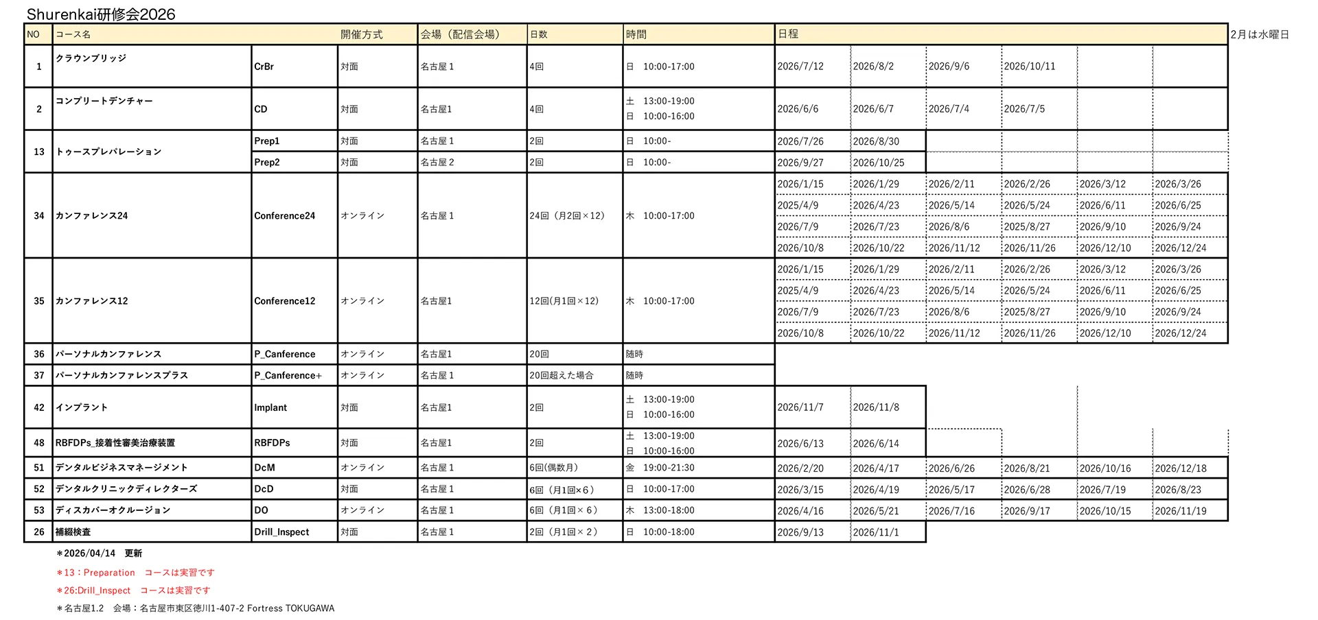 ※トゥースプレパレーションの名古屋1(7月26日、8月30日)は満席になりました